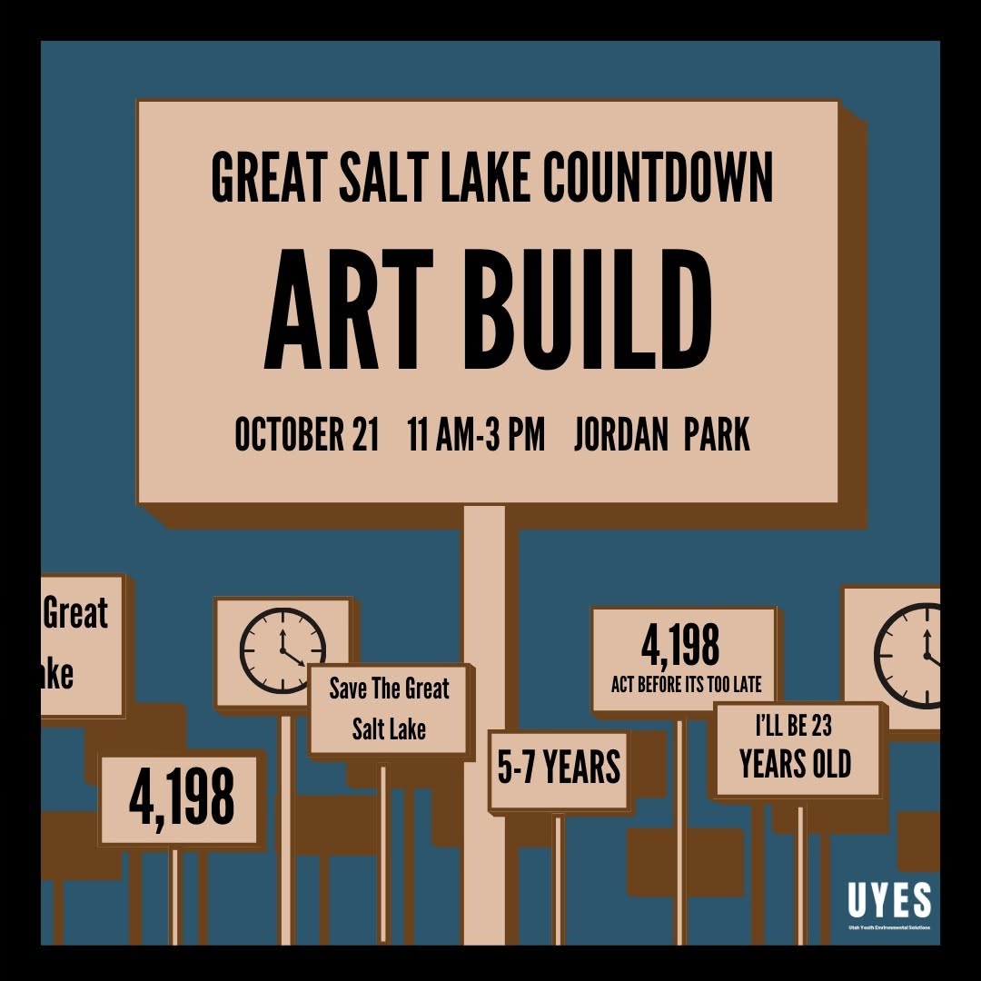 Join us on Saturday, Oct. 21 at Jordan Park to create art for our upcoming youth-led Countdown Demonstration at the Great Salt Lake!